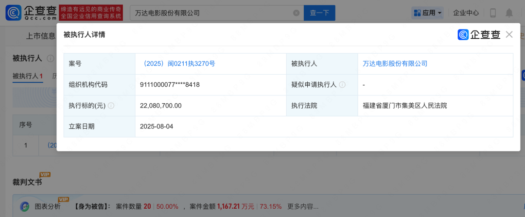 企查查APP显示,近日股票杠杆手续费,万达电影股份有限公司新增一则被执行人信息,执行标的2208.07万元,执行法院为福建省厦门市集美区人民法院。